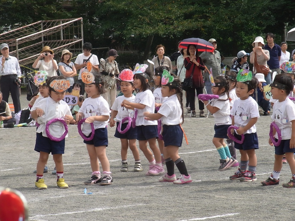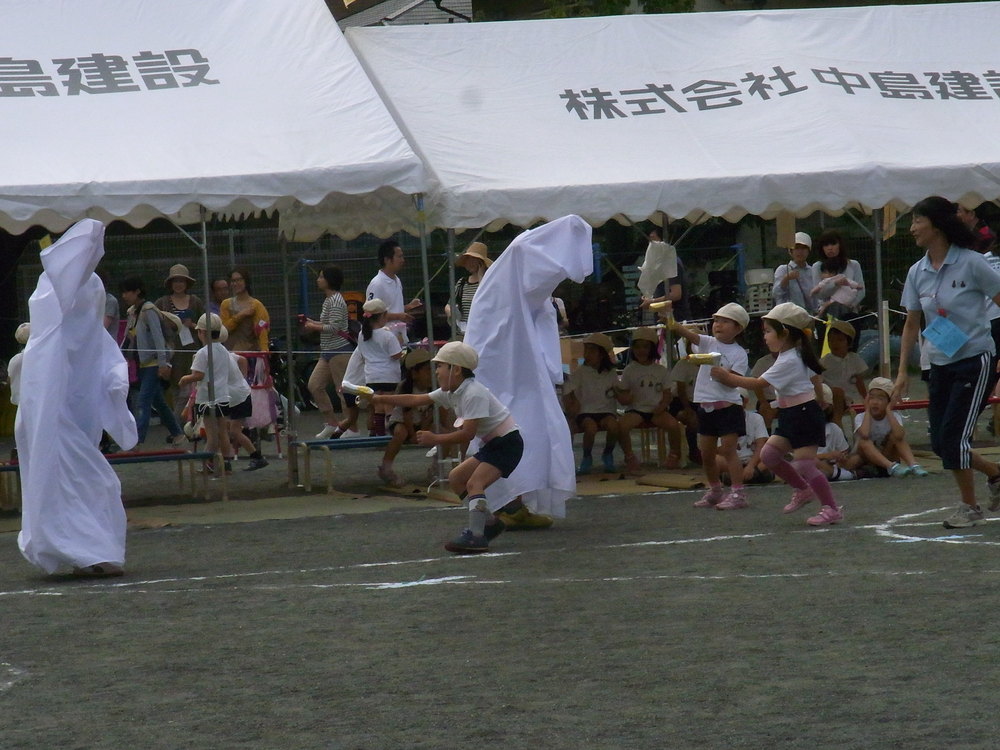 今年の年中は「おばけ」がテーマ。ちからいっぱい走って、楽しそうにおばけと戦いました。