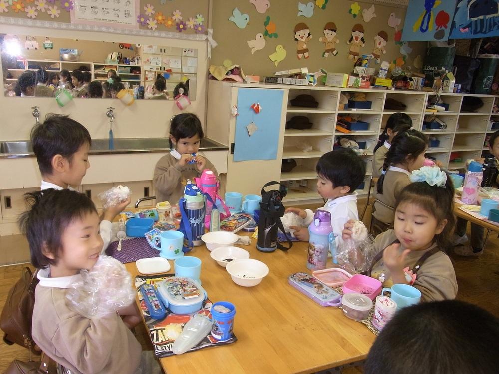 年中は室内でグルングルンとおにぎりを作りましたが、普段のお弁当のときより、ず~っとたくさん食べられます。